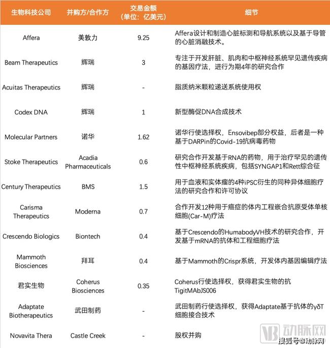 JPM 2022上公布的部分交易 (数据来源:动脉网根据公开信息整理)