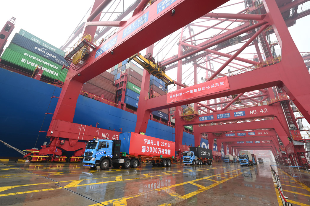 8、宁波舟山港成为全球第三个跻身“超3000万箱俱乐部”港口。
