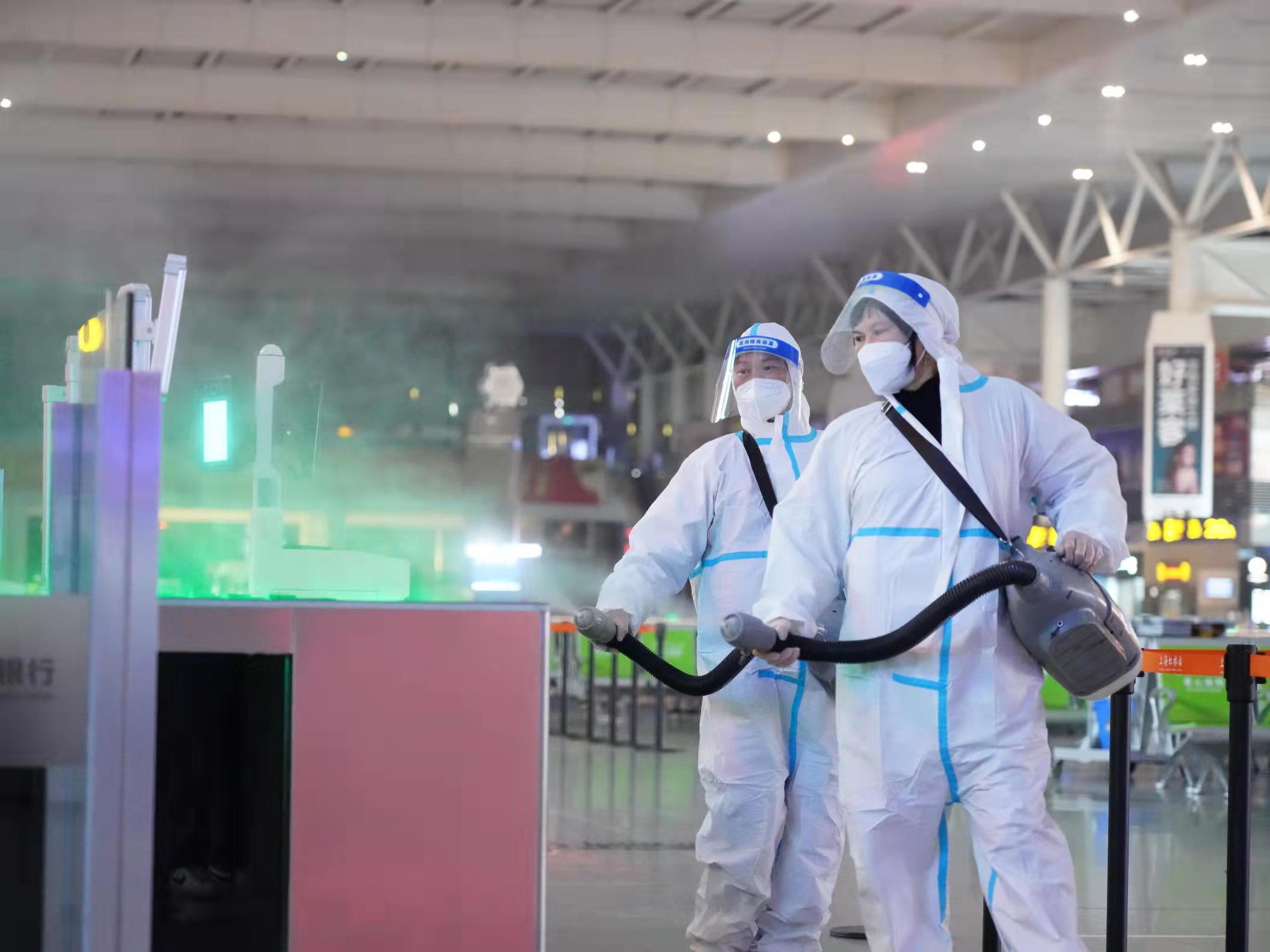 交通枢纽:背上30多斤喷射器,深夜消毒5小时