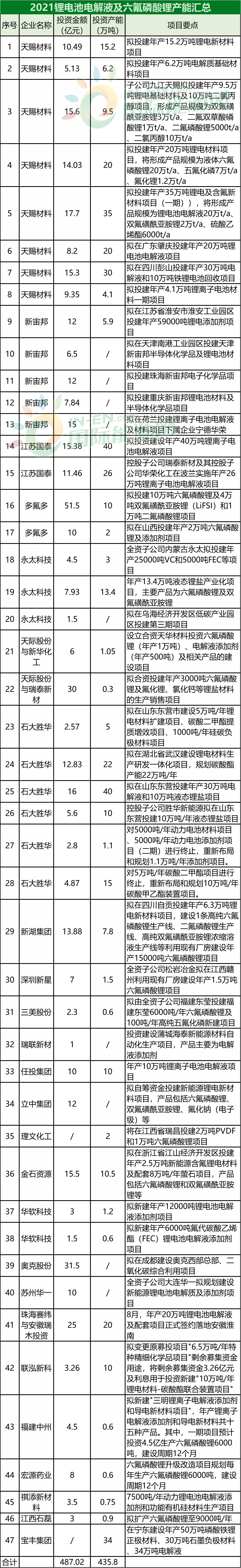 电解液和六氟磷酸锂以及铜箔等锂电材料项目投资额也非常巨大,但产能规模远远低于正极材料。