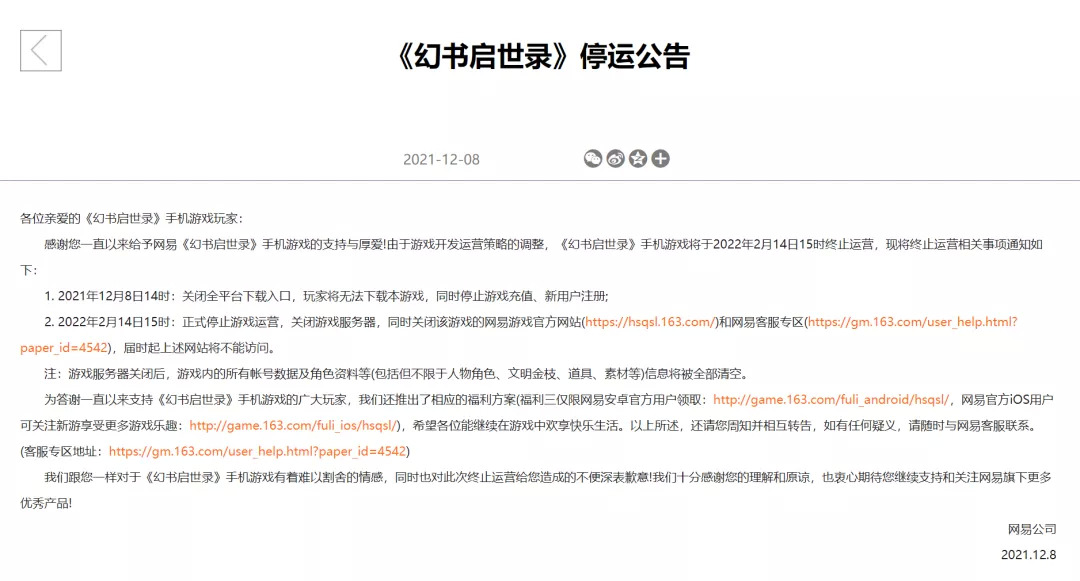 首先是于2020年12月17日开启公测,但运营不到一年就发布停运公告的《幻书启世录》,这款由网易自研的书籍拟人RPG手游。