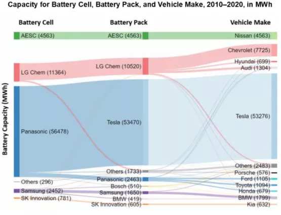 2010年-2020年间,5家亚洲企业提供美国电动车锂电池