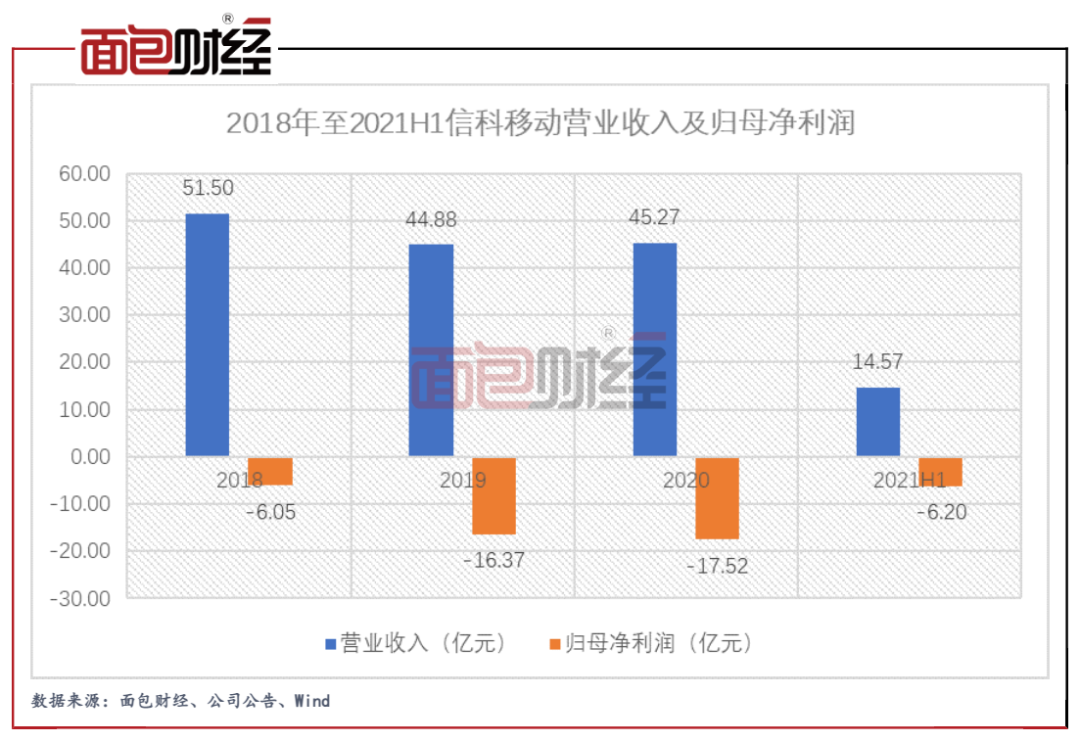 2021年上半年,公司实现营业收入14.57亿元,归母净利润亏损6.2亿元。截至上半年末,信科移动累计未弥补亏损为71.81亿元。