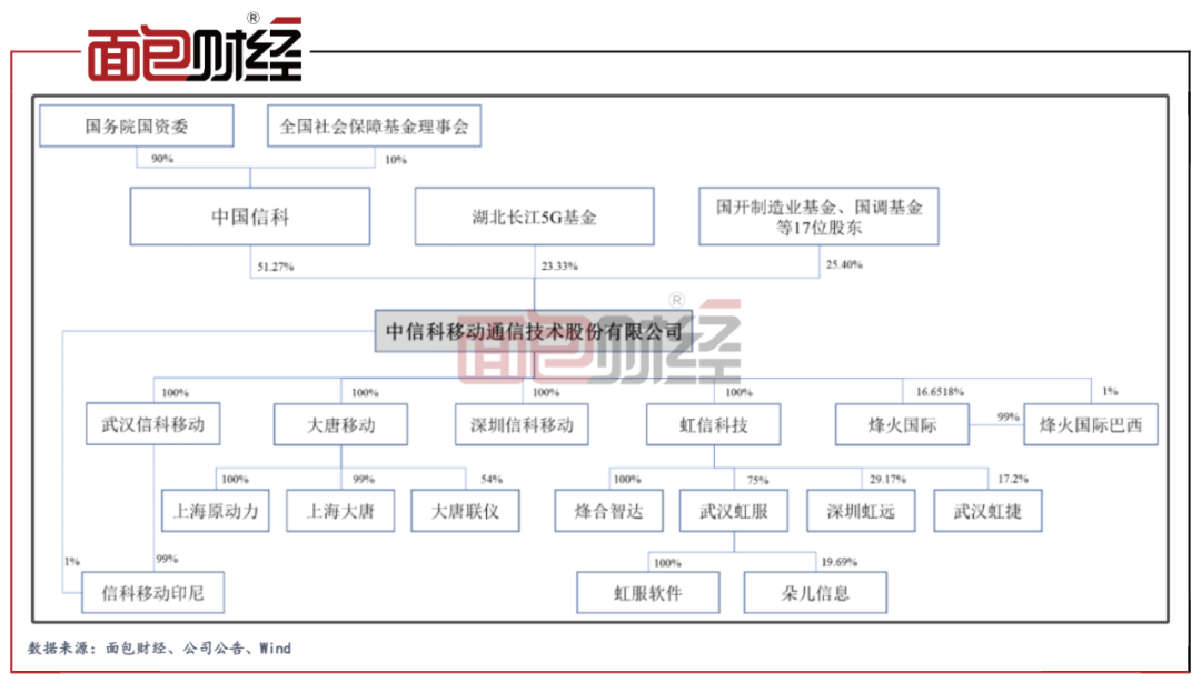 信科移动前身为信科移动有限(曾用名为虹信通信),1998年经邮科院批准成立。央企中国信科持有信科移动51.27%股权,为信科移动实控人。