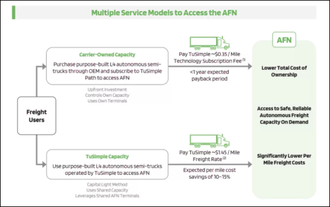 图森未来通过具备L4级自动驾驶能力的自动半挂式客车、Tusimple路径系统和按里程付费的交付模式,构建它端到端的数字化能力。这家美股上市的公司,即使收入不多,但仍在2021年7月一度达到千亿人民币市值,这既是自动驾驶的胜利,亦是产品即服务模式的胜利。