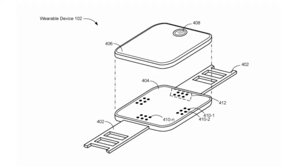 在专利文件中写道:“本发明涉及一种便携式设备,包括表带、底座、可拆卸连接的显示器,以及集成在显示器内的摄像头”。这个专利中最令人惊讶的是可拆卸的屏幕,它可以 “旋转或取下显示屏以调整相机的方向”。
