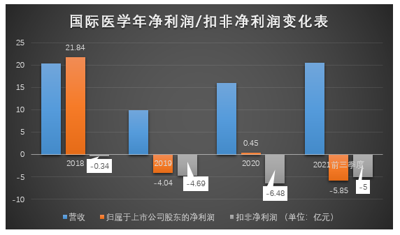 核心资产面临停业整顿,ST国医原本就处于颓势的业绩状况无疑将雪上加霜。其中,西安高新医院为ST国医旗下唯一一家三甲医院,也是常年唯一一家处于盈利状态的子公司,2021年上半年实现净利润0.42亿元;同期,有“全球最大的单体医院”之称的西安国际医学中心医院亏损2.51亿元,商洛国际医学中心医院亏损0.39亿元。
