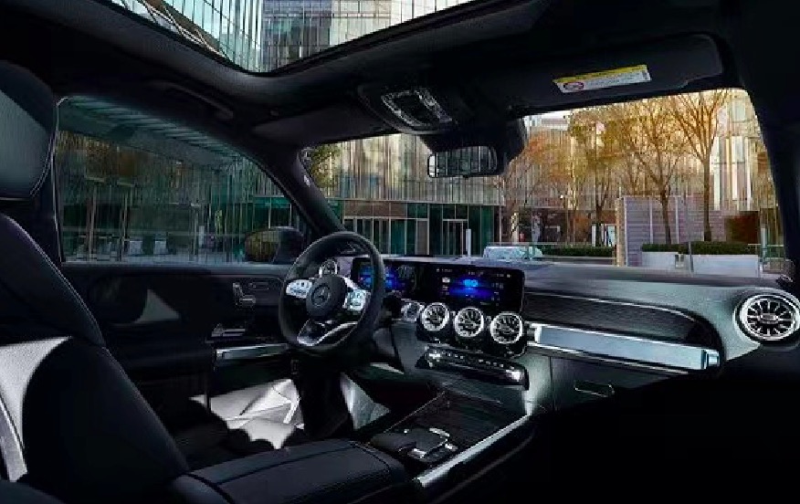 进入车内,EQA和EQB两款车都是大家熟知的奔驰家族内饰布局。在前排乘客的正前方首次采用了星云流光饰件,提高了前排的空间明亮度。