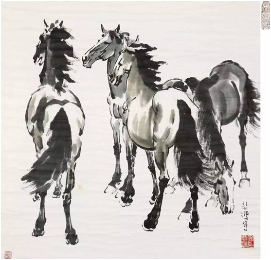 ▲图:徐悲鸿的《四马图》
