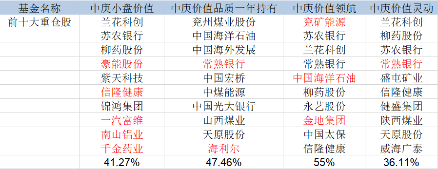 从业绩来看,去年四季度,中庚小盘价值、中庚价值领航、中庚价值品质一年持有、中庚价值灵动四只基金业绩均跑输了比较基准,其中中庚小盘价值回报率仅0.02%、中庚价值灵动回报率为0.03%;中庚价值品质跌幅为4.84%,价值领航跌幅为3.17%。
