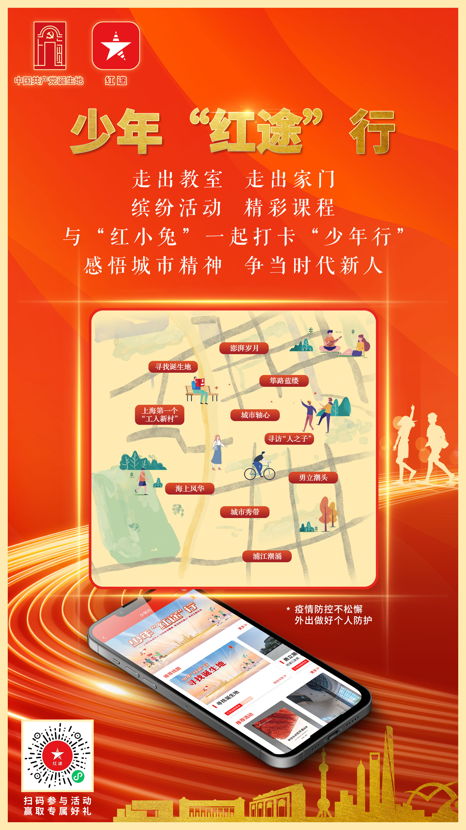 为帮助广大中小学生度过一个“安全、健康、有益、快乐”的寒假,推进家庭、学校、社会协同育人,少年“红途”行活动发布了第一季10条寻访线路,中小学生可以与家长一起打卡活动线路,感悟上海的红色文化、海派文化、江南文化,弘扬城市精神品格,争当新时代好少年。参与者将打卡报告发送给“红途”微信公众号,还有机会赢取专属好礼。