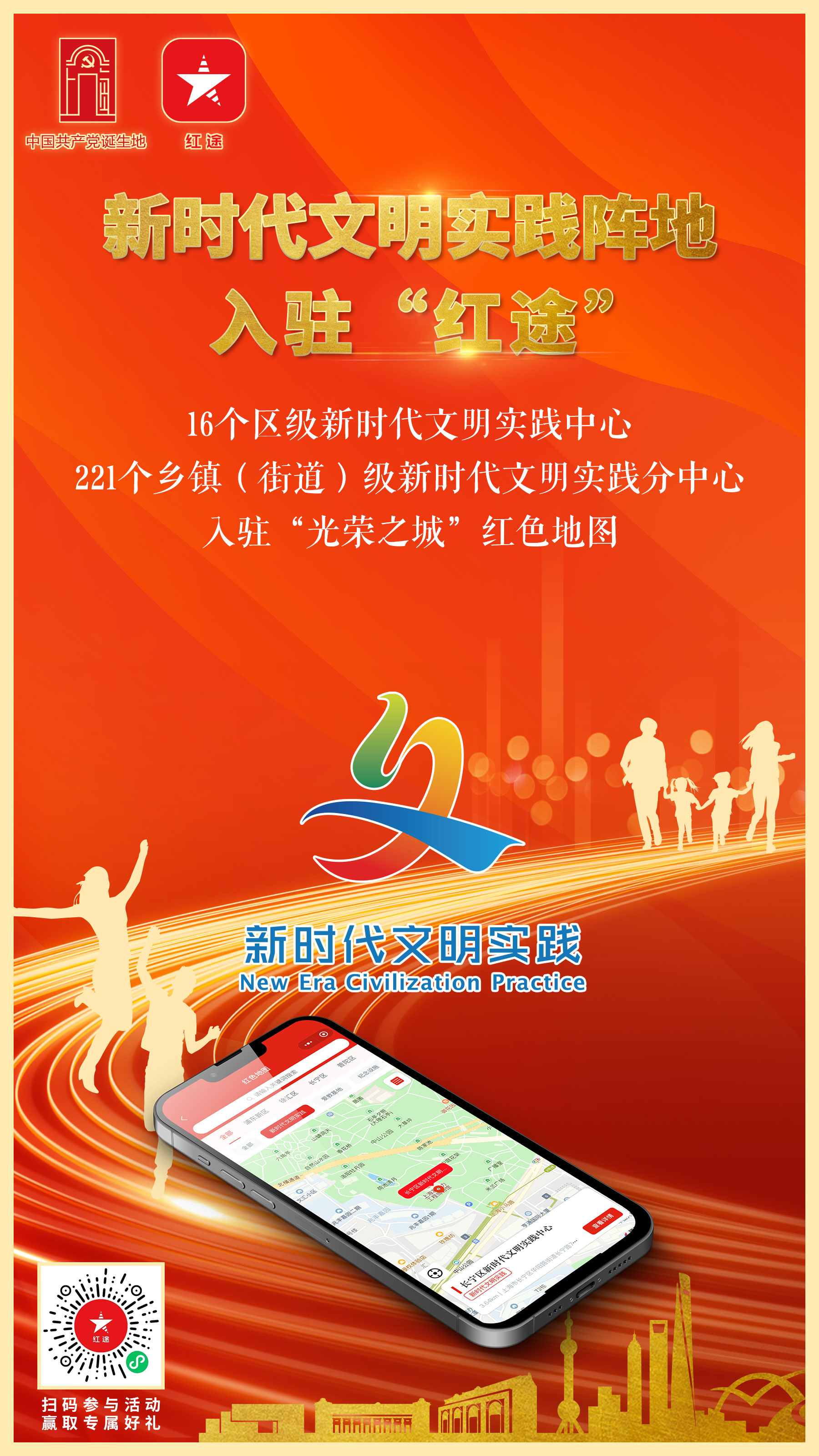 为顺应时代发展新趋势、百姓生活新需求、区域发展新特点,“红途”联合市文明办,推动全市16个区级新时代文明实践中心和221个乡镇(街道)级新时代文明实践分中心入驻“红途”。今后,用户可以在“红途”平台“光荣之城”红色地图里,“一键获取”237个新时代文明实践中心、分中心信息,资源分布“一览无遗”,就近参与文明实践和志愿服务活动。