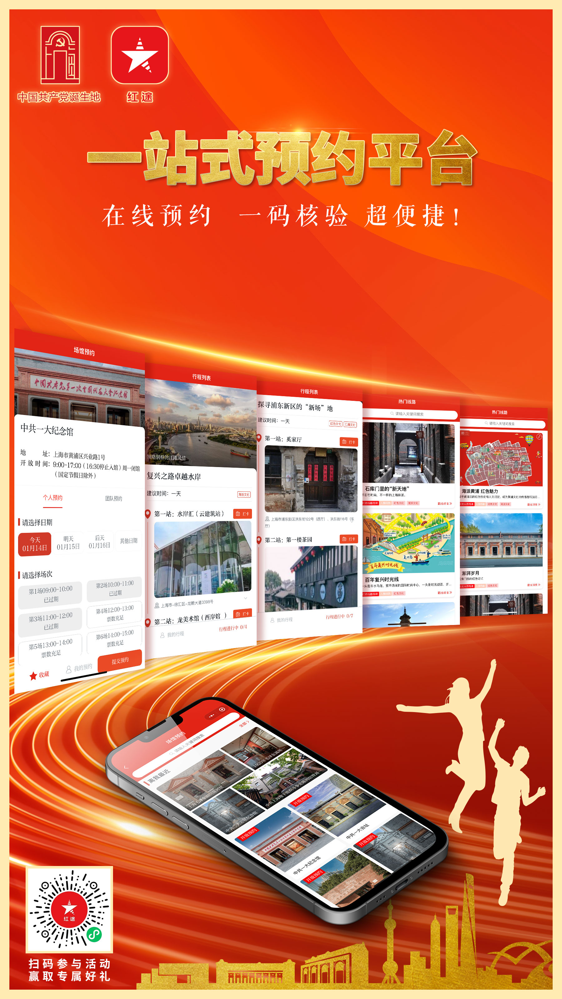 “红途”联合市大数据中心,推进全市场馆一站式预约平台建设,打通“走红途?看红馆”的“最后一公里”。“红途”预约码+随申码“二码合一”,上海“一网通办”红色应用再添新场景。目前,全市已有66家重点场馆开通在线预约。截至去年12月底,累计已有超过60万市民体验了线上统一预约、线下一码核验的全流程便捷服务,“绿”码看“红”馆成为新时尚。