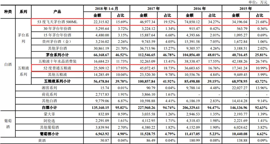 大单品飞天茅台和普五作为华致的引流产品,2018年上半年营收占比达33.62%。