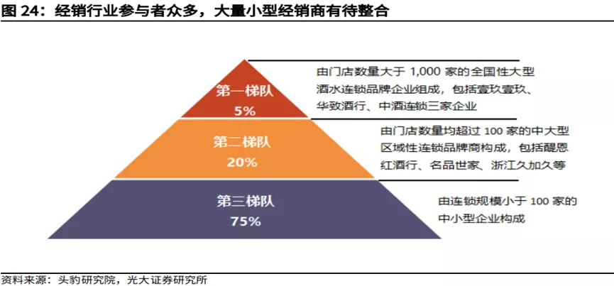 对比国外,当下的酒类流通行业还处于发展的早期阶段。行业参与者虽多,但几大龙头市占率并不高,没有出现一家或两家大型的,话语权非常大的企业,这也给未来发展提供了想象力。