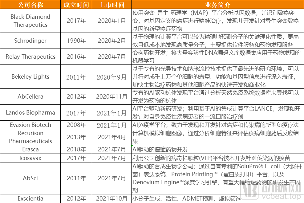其三,不同AI制药公司持续公布的令人振奋的突破进展,使得该领域热度持续攀升;以Schrodinger、Relay、Recursion和Exscientia等为代表的多家明星AI制药公司敲钟上市,更为整个AI制药市场猛添“柴火”,使得资本入场更加汹涌。