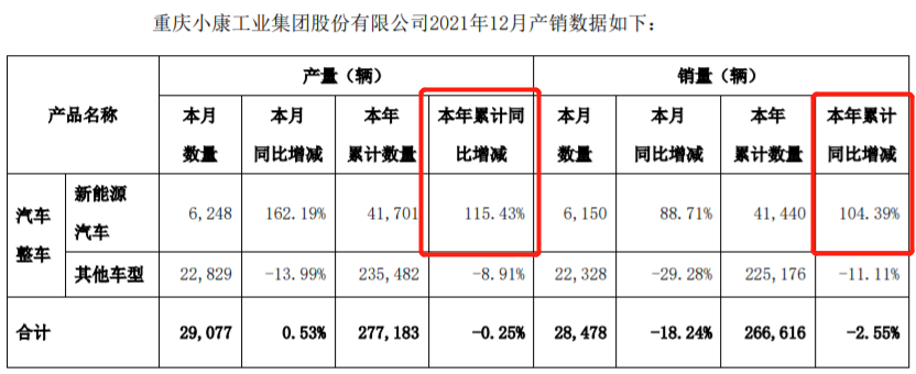 不过受益于新能源汽车行业的高景气度,2021年小康股份新能源汽车产销量较2020年增长均在一倍以上。