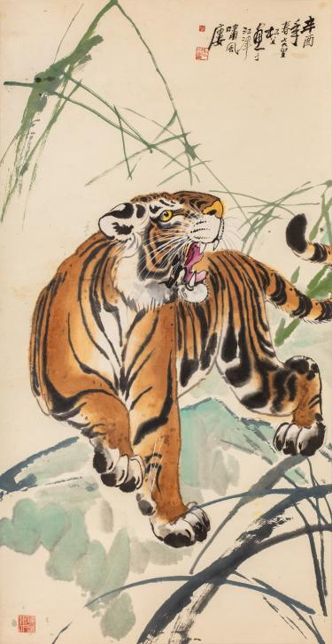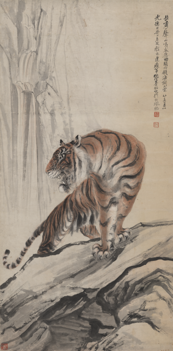 第三单元“松声虎啸”则主要展出画虎名家张善孖、阎松父的作品。虎画是中国传统绘画的重要题材之一。讲究“形似备且气韵全”,古有“画虎不成反类犬”的谚语以寓意画虎之难。而阎松父作为现代画虎名家,在抗战时期来到江津,晚年创作了大量以虎为主题的国画作品,深受人们喜爱。陈毅元帅曾有诗赞曰:“松父画虎画其神,能令真虎纸上行”。