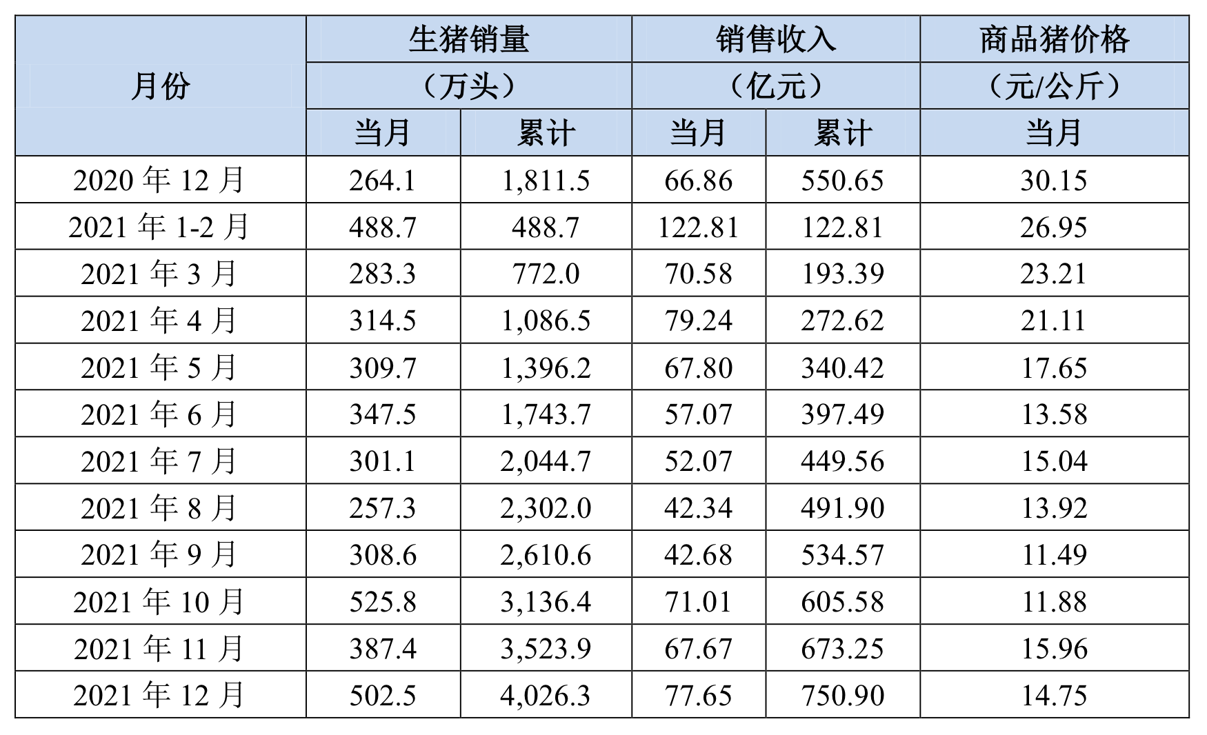 东瑞股份(001201.SZ)披露2021年1-12月共销售生猪36.76万头,销售收入9.44亿元,商品猪销售均价27.78元/公斤,同比变动分别为22.16%、-24.84%、-36.69%。