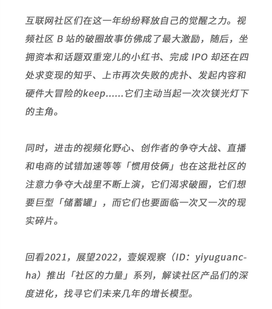 这些都是2021年社区正经历或未解决的问题,加速视频化成为常态之后,垂类社区们会在2022年交出一个新的答案吗?
