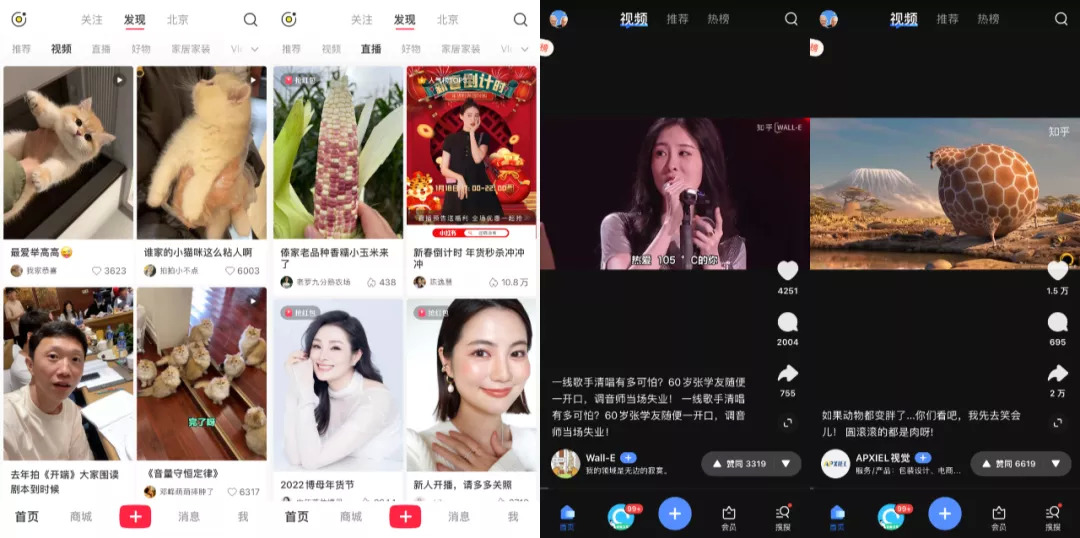 短视频内容的火爆,与各平台扶持政策息息相关。作为“晚辈”的社区们,从2020年初到2021年末,都在不断加码自身的视频属性。