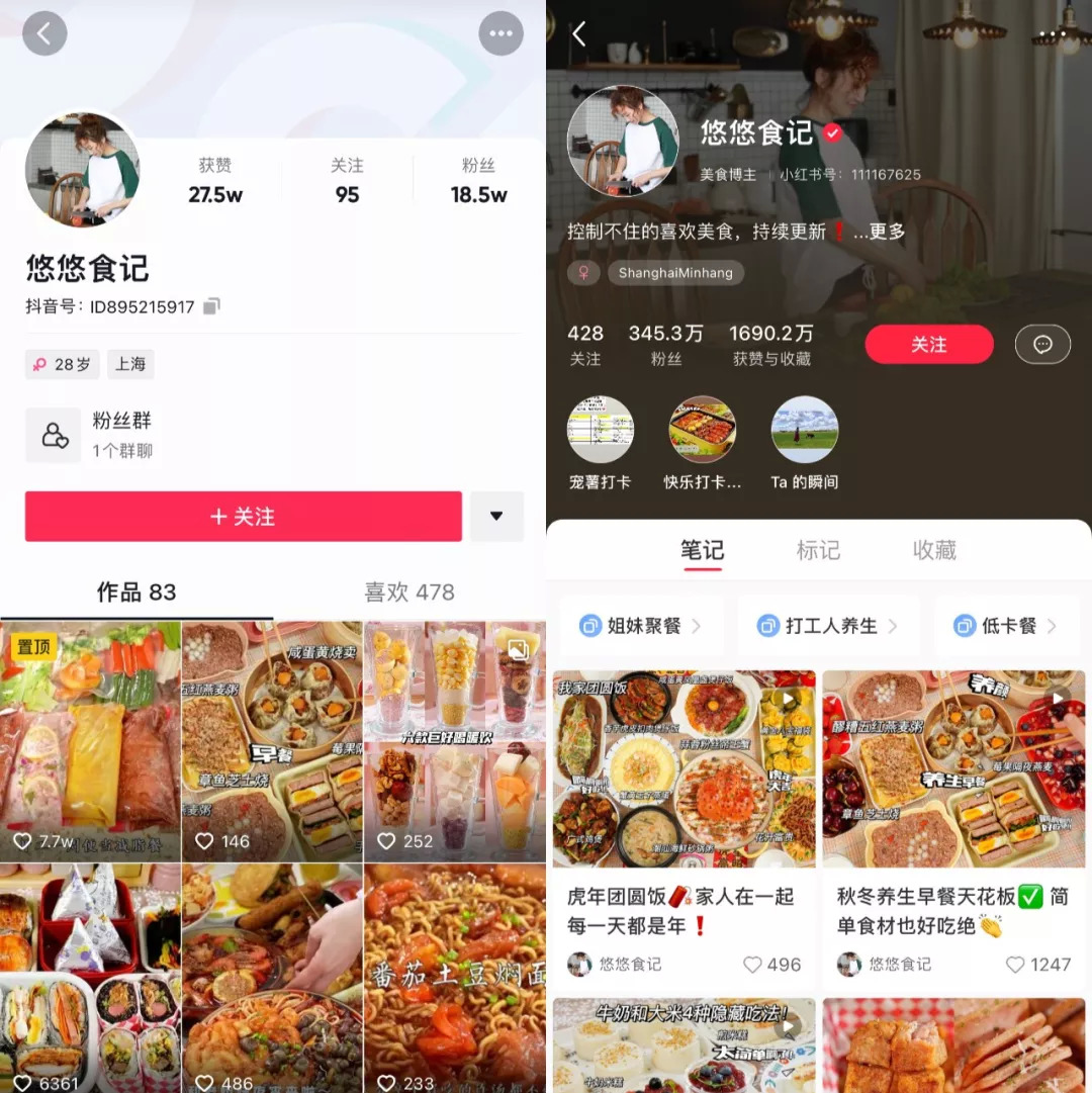 以目前小红书头部美妆博主“程十安an”为例,拥有495万小红书粉丝,在抖音上,她拥有2224万抖音粉丝。相比“程十安an”的全网热捧,美食博主“悠悠食记”拥有345.3万小红书粉丝,而抖音粉丝只达到18.5万,两者相差悬殊。在用户体量更小的keep,健身博主“韩小四AprilHan”拥有345万粉丝,在B站,相应的粉丝数字达到269万。由此可见,社区大小与粉丝数量并不一定成正比。