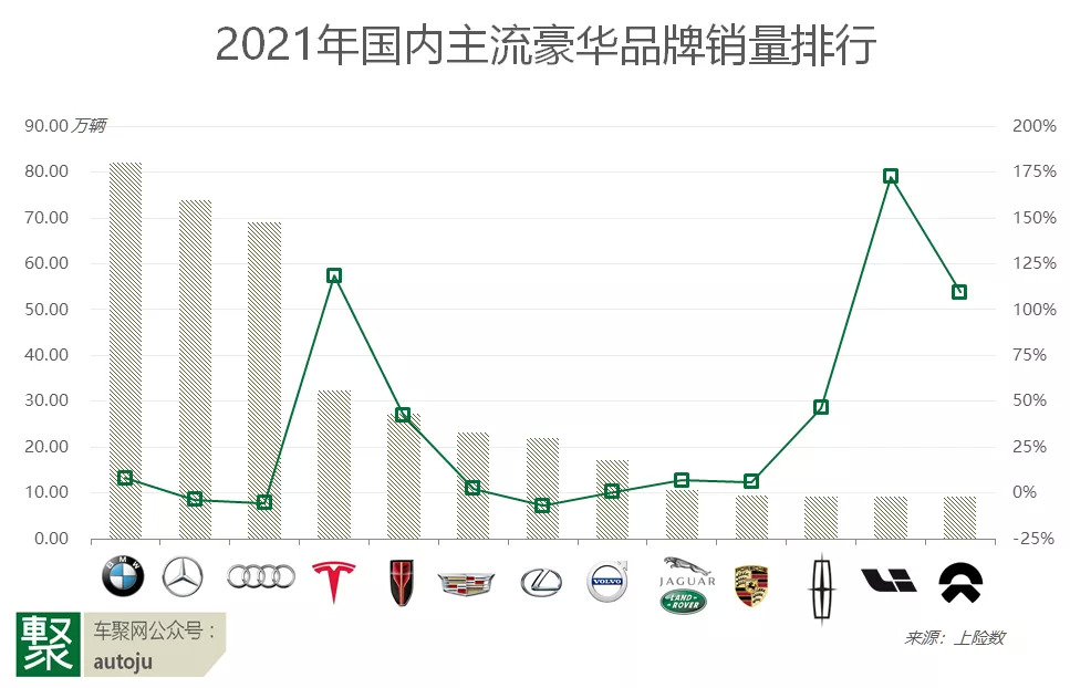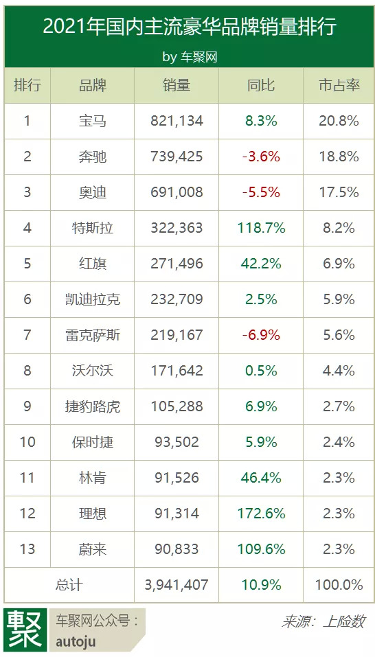 2021年豪华车保持较快增长的同时,也迎来拐点:「新豪华」品牌崛起,传统豪华品牌份额失守。