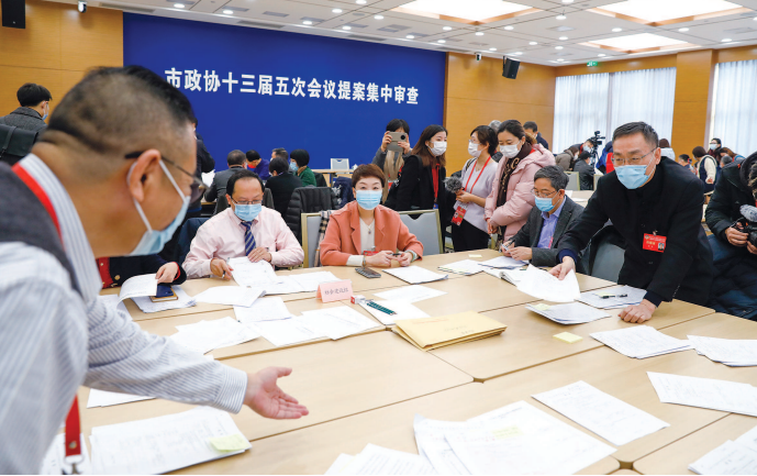 截至昨天9时,大会共收到提案286件。其中,经济建设类有108件、社会建设类有103件,是委员们关注的两大重点,分别占比37.76%、36.01%。另外,政治建设类23件,占比8.04%;文化建设20件,占比7%;生态文明建设32件,占比11.19%。委员们的提案内容聚焦城市数字化转型、人民城市建设、打造人才高地、“五个新城”建设等社会热点话题,一件件提案贴近实际、充满温度,以高水平履职聚力经济社会高质量发展