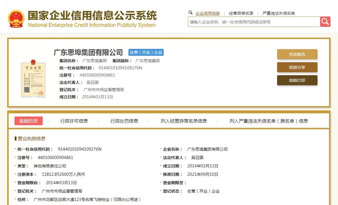 根据国家企业信用信息公示系统,思埠集团成立于2014年3月13日,法定代表人为吴召国。另据企查查显示,吴召国是思埠集团的最终受益人和实际控制人。