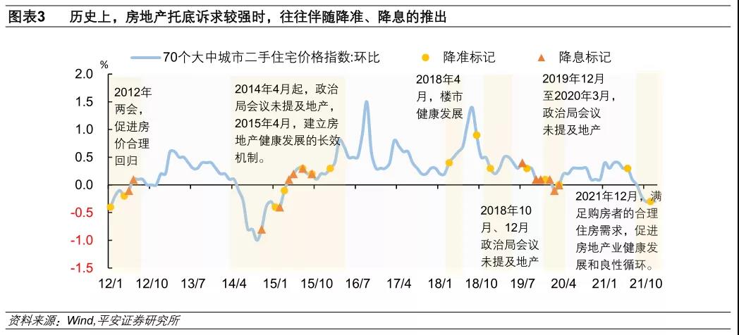 我们预计1月20日(周四)的1年期LPR报价将跟随MLF下调10bp,5年期LPR报价也有望下调5bp-10bp,以更好满足合理的购房融资需求。在各类调控政策的作用下,目前投资性和投机性的购房需求已得到遏制。从2021年12月单月数据看,房地产投资的两年平均同比下降3%,房地产开发资金来源中的居民按揭贷款单月也出现了负增长,总的来说各方对2022年房地产投资的预期仍悲观。2022年中央经济工作会议中,促进房地产行业“良性循环和健康发展”成为稳增长的重要一环,而商品房销售稳定是房地产市场健康发展的前提。2021年10月21日,银保监会负责人表示“保障好刚需群体信贷需求……要在贷款首付比例和利率方面对首套房购房者予以支持。目前,银行个人住房贷款中有90%以上都是首套房贷款。”近期深圳和广州等热点城市的房贷利率出现回落,或表明住房贷款供需格局有所好转。历史上,房价下行压力偏大、稳定房地产投资诉求较强时,通常伴随着降准、降息。我们认为,5年期LPR报价的下调对于部分持币观望的刚需购房者而言,或可起到节约成本、稳定信心的积极作用,有助于更好满足合理的购房融资需求。