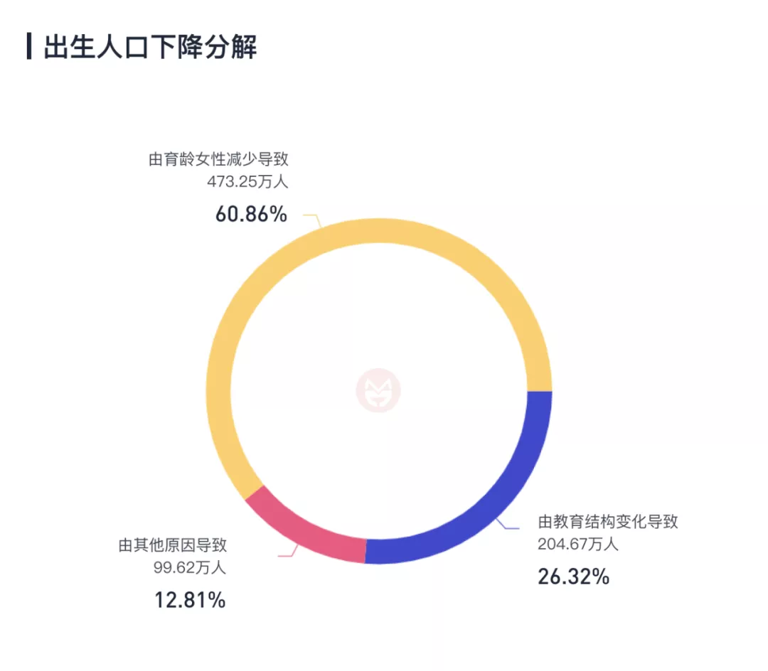 房价高了、养孩子贵了……这些人们常常在谈论的因素,可能没影响,也可能有影响,但不管怎样,他们对出生人口的影响,至多只有100万人。相比之下,房间里的大象——导致了677万出生人口下降的育龄女性数量、年龄结构和教育结构的变化,却极少有人提起。