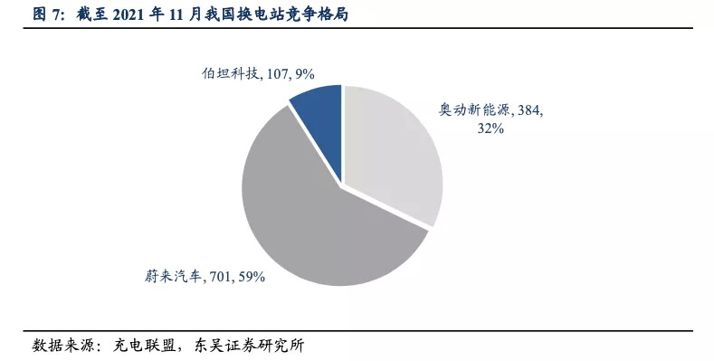 据东吴证券,截至2021年11月,蔚来和奥动新能源换电站的建设规模分别为701座和384座,伯坦科技以107座排名第三。