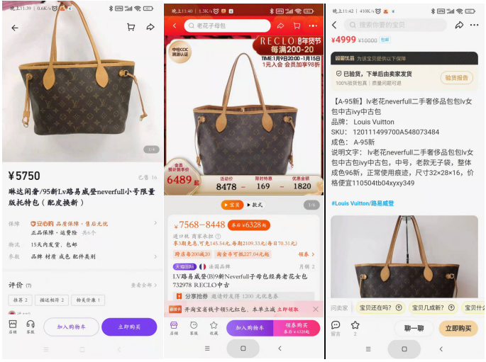 lv二手奢侈品,抖音盒子,淘宝,闲鱼对比图