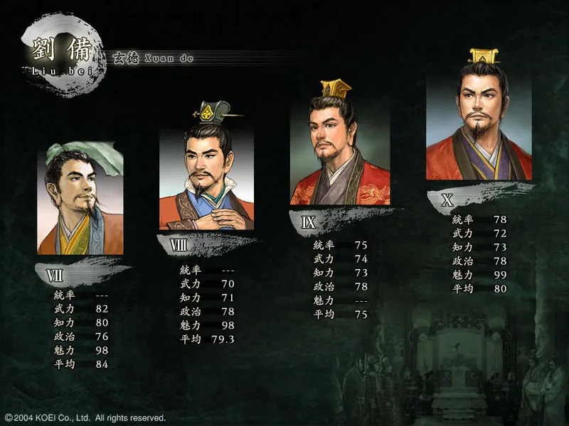 即使是光荣,在“无双”里遵从主题色,在《三国志》中也依然使用更为严谨的配色,比如刘备的形象就一直是红红火火的汉室正统。