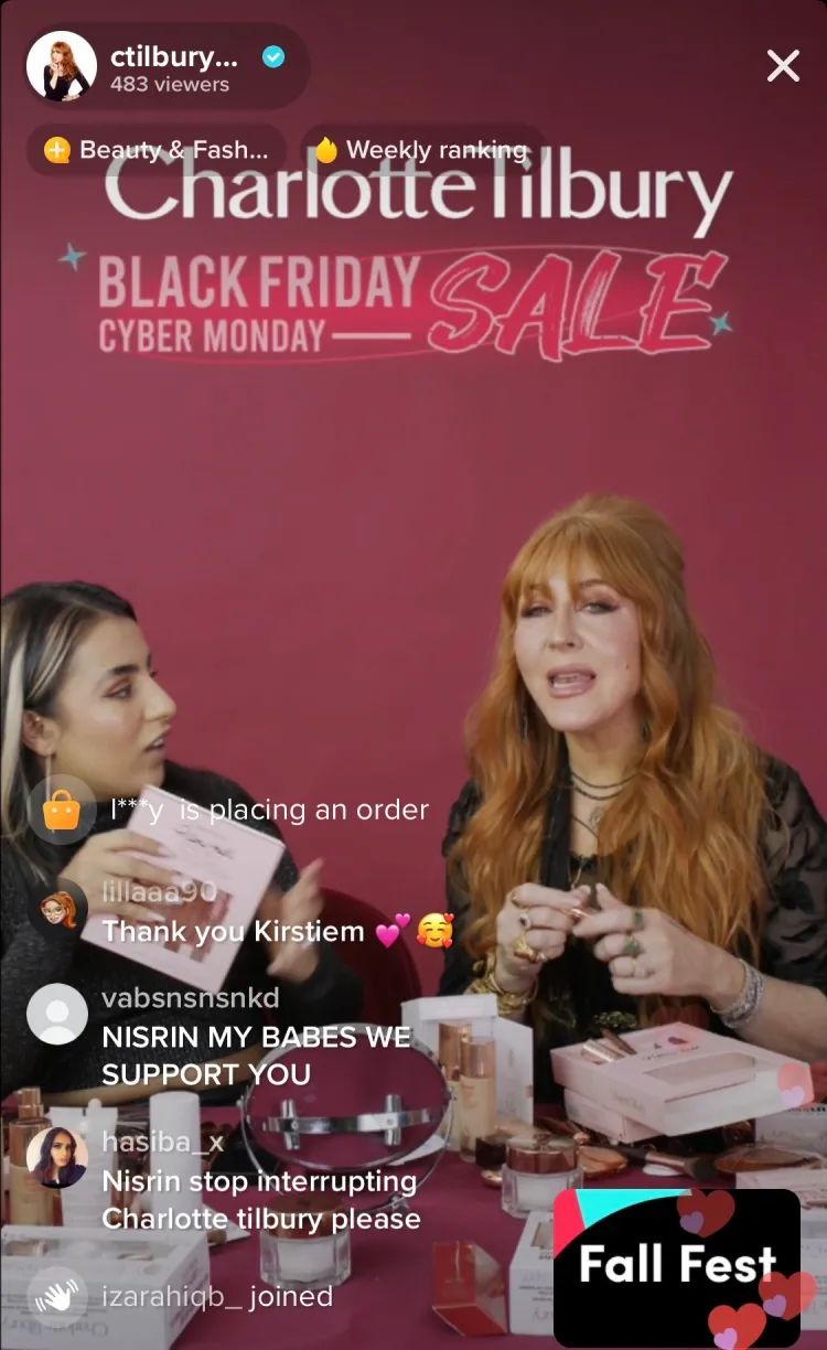 黑色星期五当周(11月24-30日),TikTok在英国区组织了多场直播带货活动,参与的品牌包括Charlotte Tilbury、MAC、欧莱雅,以及购物网站LOOKFANTASTIC等。