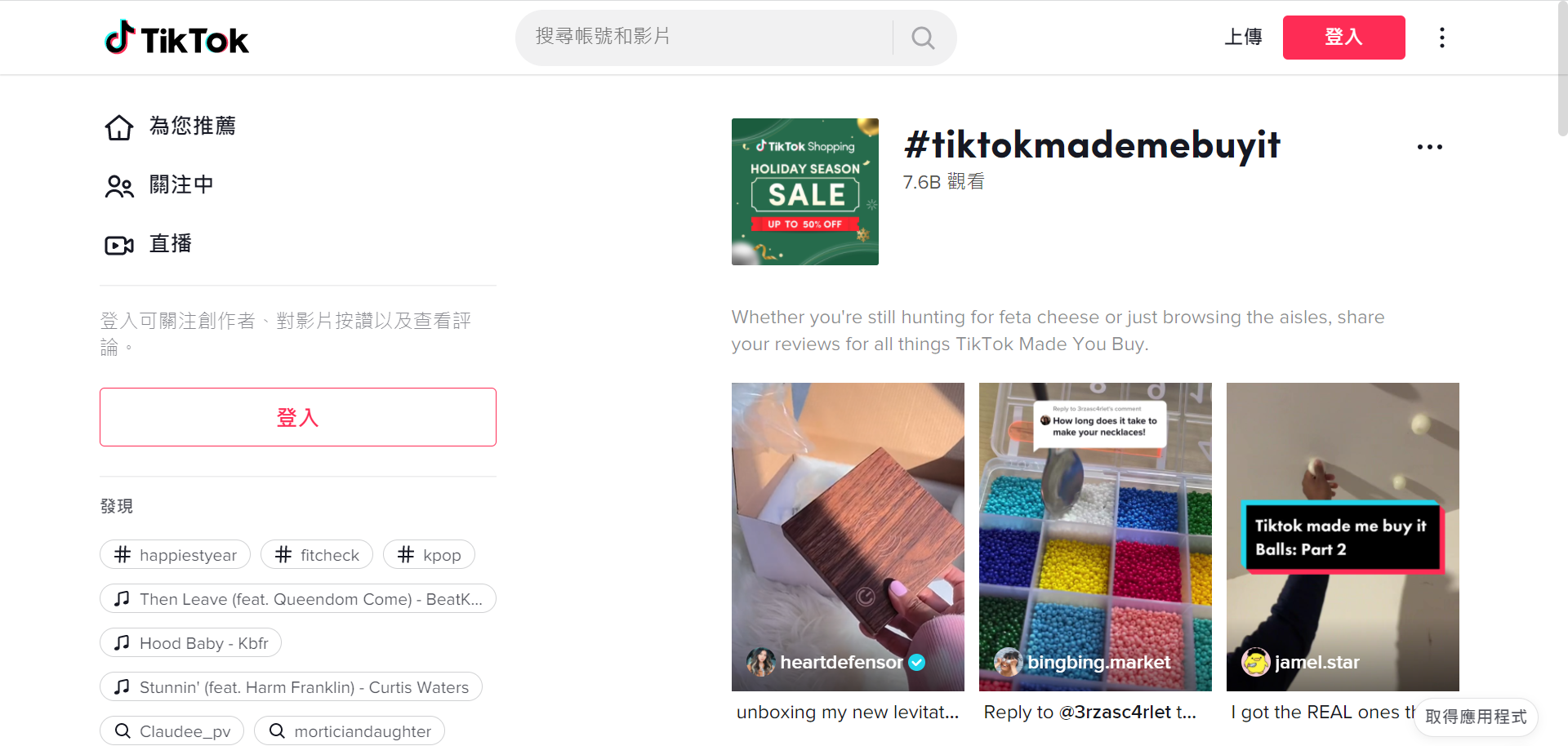 与抖音发展早期类似,TikTok展现出不错的种草潜力,截至2021年12月31日,#TikTokMadeMeBuyIt#下的内容观看量累积超过76亿。