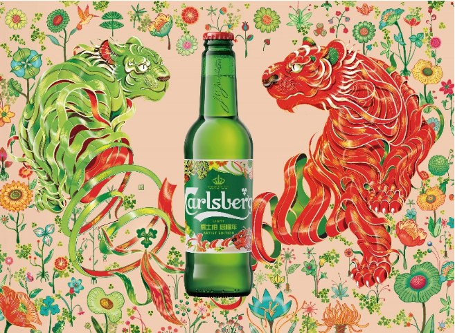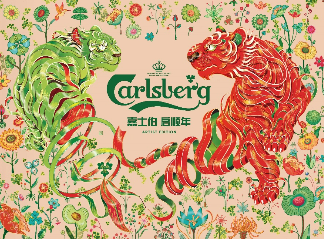 长久以来,嘉士伯深耕艺术与设计领域,将充满艺术感的画面融入产品包装中,为消费者带来更新颖的高品质啤酒。“虎” 气临门,2022新春将至,嘉士伯携手知名插画艺术家倪传婧以“双虎呈瑞”为画卷,寓意“虎”福临门、好事成双。打造嘉士伯虎年艺术家联名版包装,将画作印于瓶身之上,呈现现代绘画技巧与传统的东方文化的完美交融,臻呈匠心,祝福壬寅虎年顺顺利利,迈向更好。