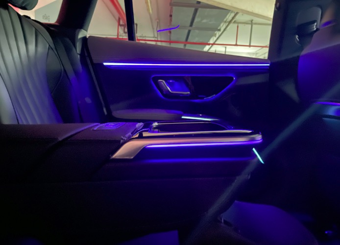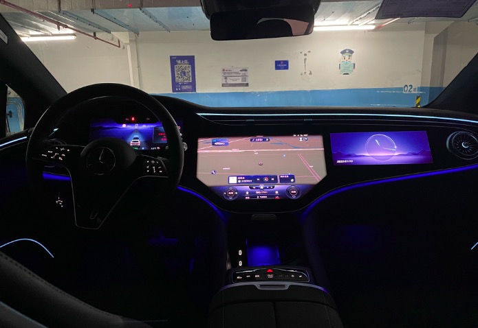 驶入地下车库或在夜晚驾驶时,EQS的性格将发生大转变,在氛围灯的萦绕下变得旖旎。