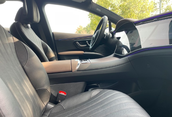 得益于3米2的轴距,后排空间并不小,材料的高级感和坐垫支撑性都无法诟病,但美中不足的是其大腿部支撑过短,使得一小截腿部腾空。在这方面,EQS对后排乘坐舒适性的照顾与奔驰S级有一定差距。