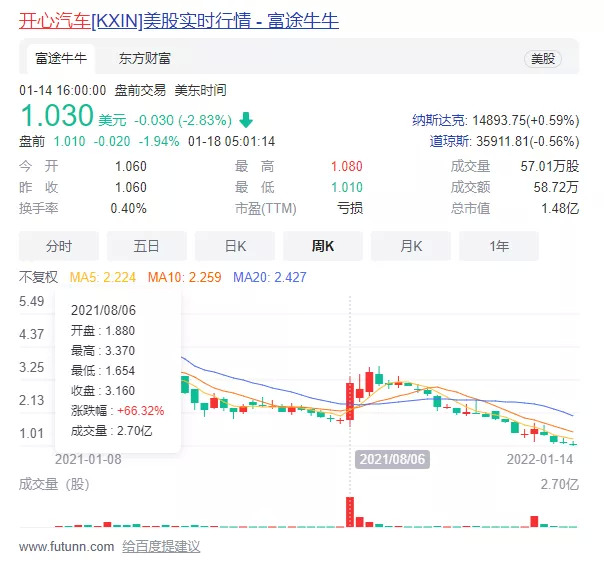 2021年8月,官宣造车。当天股价暴涨超100%,创下半年来最大单日涨幅。