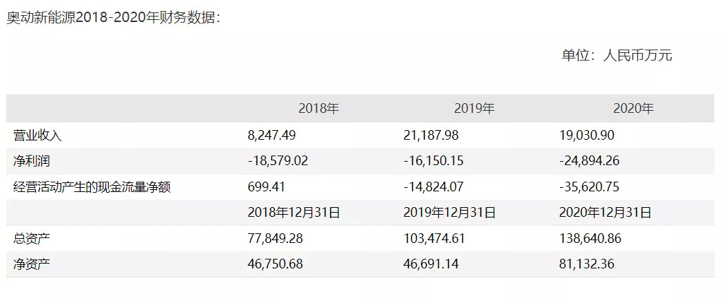 去年年底,畅联股份发布公告宣布将投资奥动新能源,投资金额预估为一亿元。根据前者发布的公告,可以看到奥动新能源2018-2020年的财务数据。2018年-2020年,奥动新能源营收分别为0.82亿元、2.12亿元和1.90亿元。