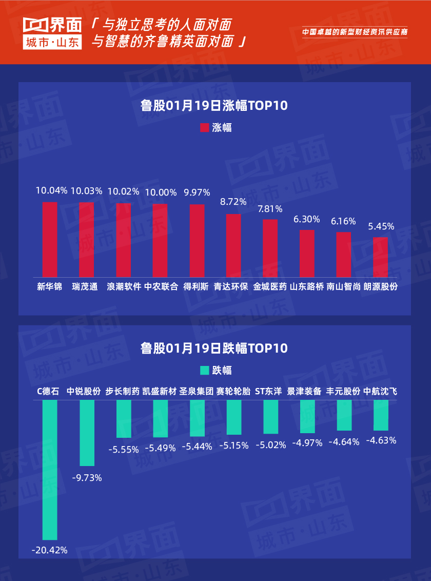 1月19日,山东142股上涨,115股下跌。