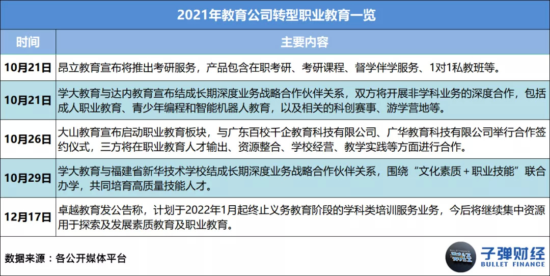 此外,随着国家相关政策的出台,职业教育一跃成为众机构青睐有加的转型方向。