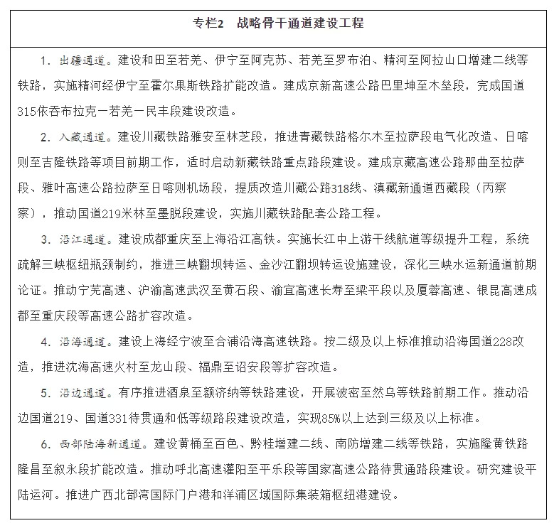 比如规划中,对涉及西部陆海新通道的国家战略也有相关表述: