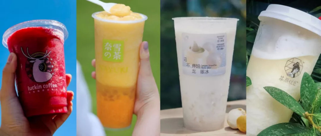 新流行水果,做成冰沙直接出品:如喜茶、茶百道推出的龙眼冰,秋天伏小桃等品牌卖柿子、奈雪上新的杏类产品,都是将直接新水果打成冰沙出品。