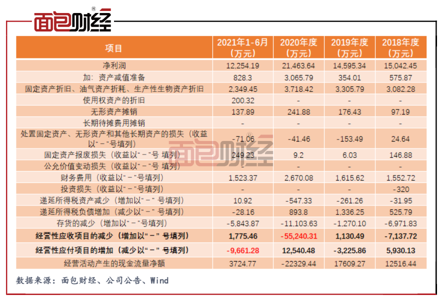 2020年、2021年上半年,公司经营活动产生的现金流量净额分别净流出2.23亿元、净流入0.37亿元,与当期归母净利润金额相差较大。