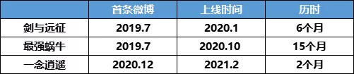 《一念逍遥》作为一款无IP的放置游戏,在社交媒体上以宣传游戏为主,在首条微博发布后,2个月便完成上线。而市场上有一定名气的《剑与远征》,预热阶段官方微博多以展现产品立绘和同人作品为主,外加官宣国内人气游戏主播“一条小团团”成为游戏打气官,试图通过头部主播吸引国内游戏用户玩家,加大其产品影响力。