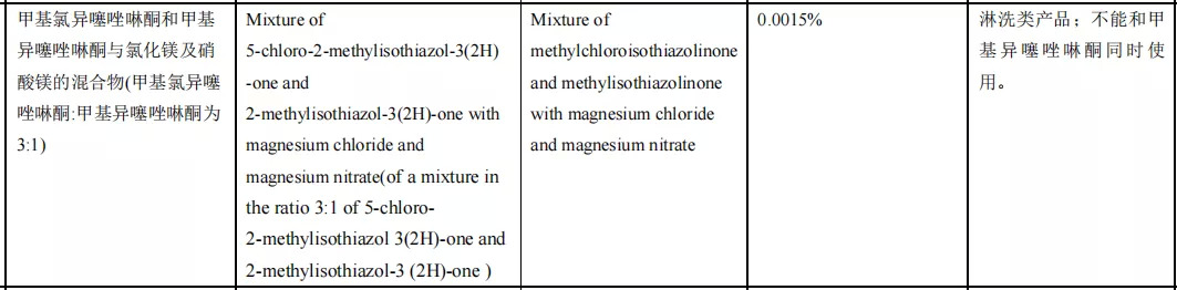 另外,在此次通报的产品中,有8批次被检出因超限量使用甲基氯异噻唑啉酮和甲基异噻唑啉酮与氯化镁及硝酸镁的混合物(甲基氯异噻唑啉酮:甲基异噻唑啉酮为3:1),含量集中在0.0017%-0.00328%。而根据《化妆品安全技术规范2015版》的规定,化妆品使用最大允许浓度为0.0015%。