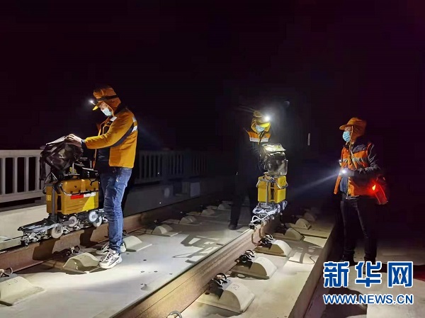 “钢轨是保证高铁列车时速300公里安全运行的最基础设备,在气温低的时候由于‘热胀冷缩’原理,容易出现断轨安全问题,我们的工作就是提前发现隐患,确保安全。”蔡红勋说。
