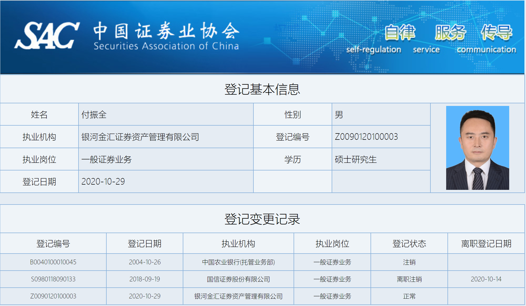 他2018年9月加入国信证券,出任国信证券资产托管部总经理,2020年10月开始担任银河金汇执行委员会主任、总经理。